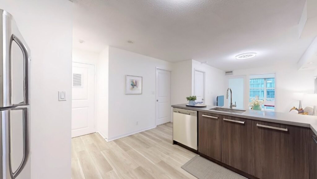 Let’s talk about the kitchen, because it’s massive—and not just by downtown standards. This isn’t some sad strip of cabinetry tucked against one wall. You’ve got room to cook, room to host, and storage for all your gadgets without hauling them down to your locker every time. The island layout means easy flow into the living space, whether you’re plating dinner or pouring a glass of wine after work.