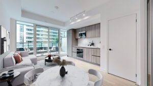 Sip in the excitement of this perfect 1-bedroom Toronto condo (with a sunny balcony!) located at 127 Broadway Ave. Unit 202S in the fabulous Line 5 Condos—Midtown’s newest hotspot! Super modern with sleek European-style hidden appliances and a full-size washer and dryer—pretty much everything you need and want to forget about. This well-designed building has a vibrant community and boasts world-class amenities: stylish entertainment lounge, state-of-the-art gym, outdoor pool, BBQ area, co-working space, yoga studio, pet spa—you name it!