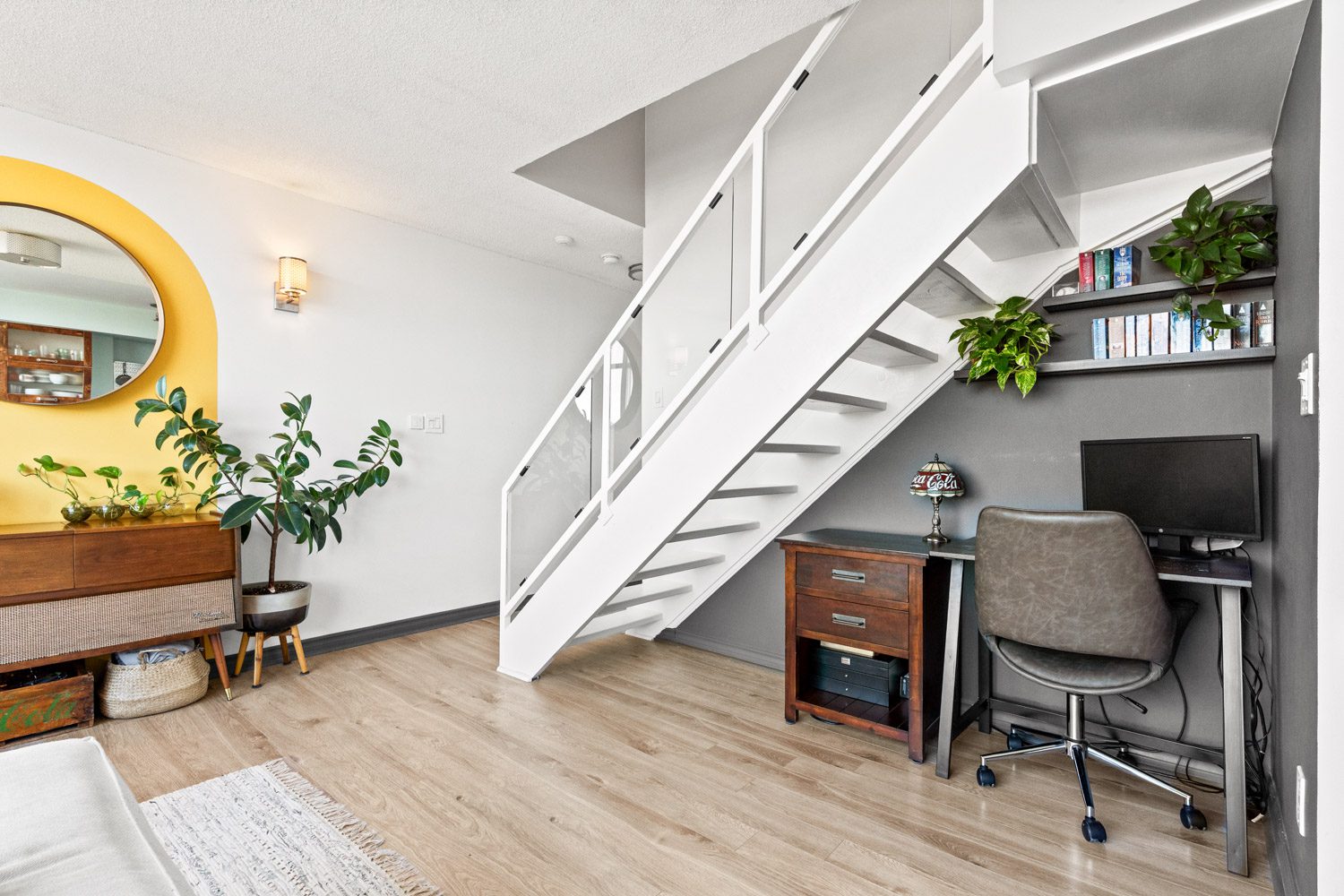 This is the kind of loft people mean when they say they want a loft. Bright. Functional. A little dramatic. Actually cool.