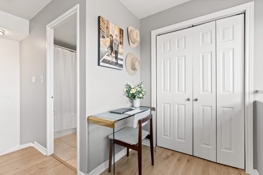 This suite is approximately 755 square feet, it comes with parking and an owned locker, and the parking space is extra wide, which is one of those details that sounds small until you’ve lived with a tight parking spot and wanted to scream. The suite is also carpet-free, with forced air gas heating and central air, so it feels easy to live in day to day.