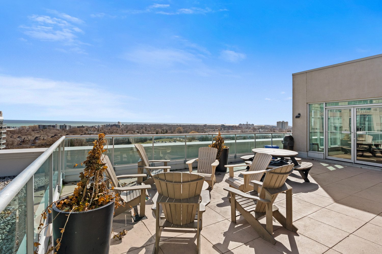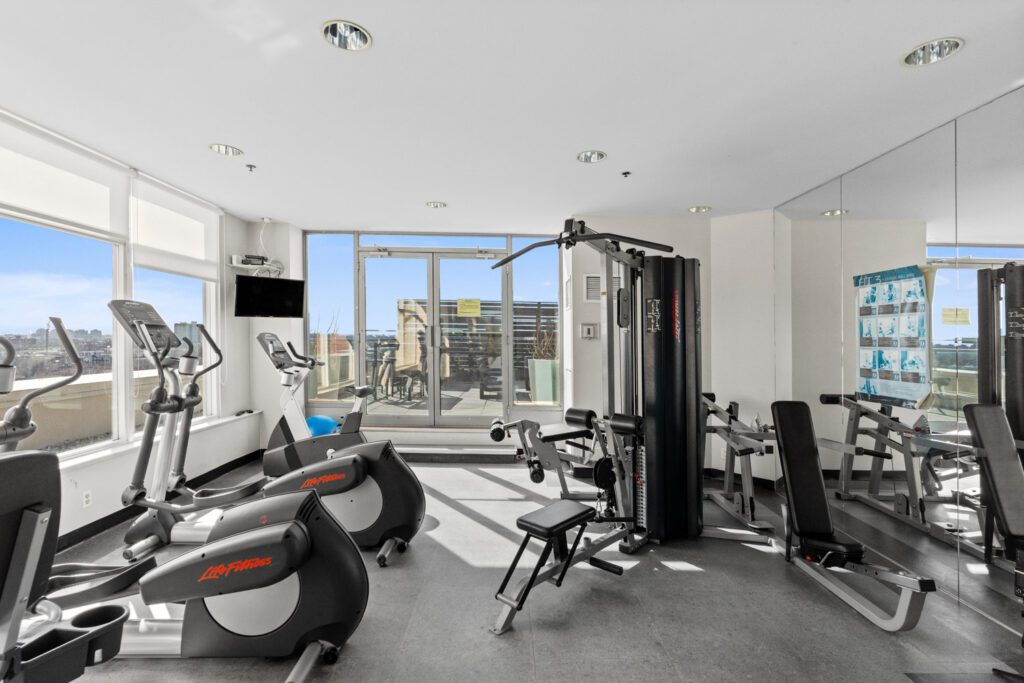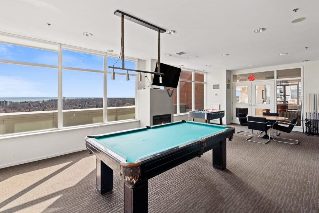 The building amenities are strong too. Residents have access to a gym, rooftop deck and garden, sauna, squash court, party room, visitor parking, a guest suite, rooftop BBQs, and an entertainment lounge with games, TV, and a pool table.