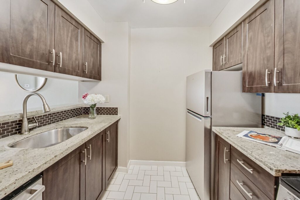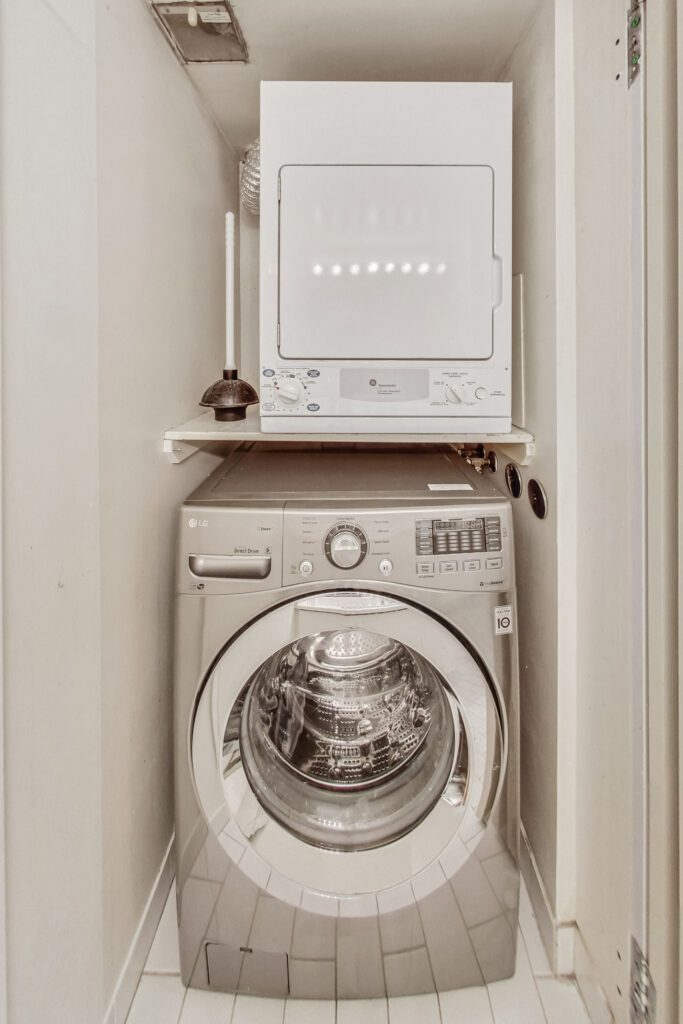 Let’s talk about the bathroom: You get a full-size tub and a separate standing shower. Why settle for just one when you can have both? The primary bedroom is your own private oasis, featuring two closets—perfect for storing everything from your work wardrobe to your weekend casuals. If space is a priority, this unit delivers.